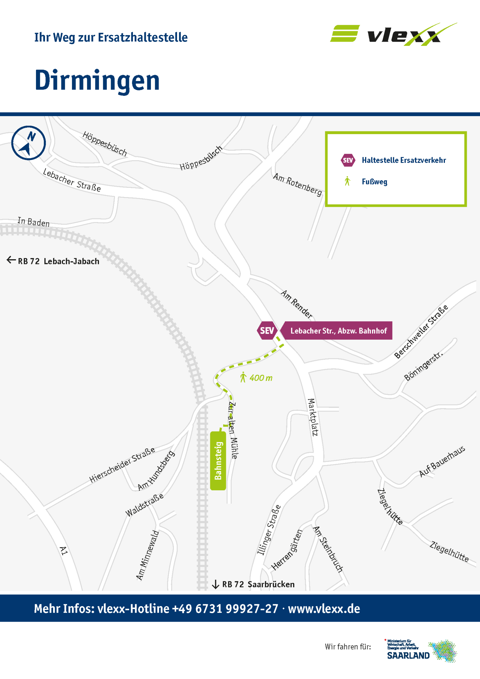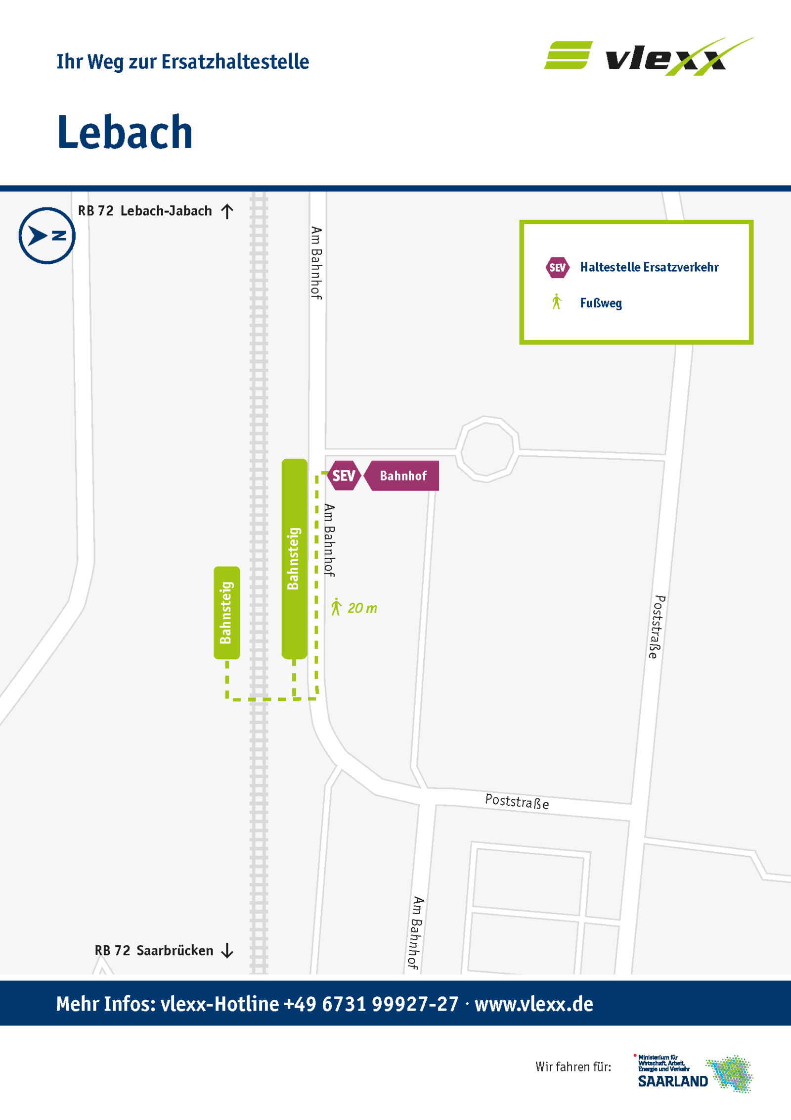 Für die betroffenen Streckenabschnitte wird ein Schienenersatzverkehr (SEV) mit Bussen bis Lebach eingerichtet.