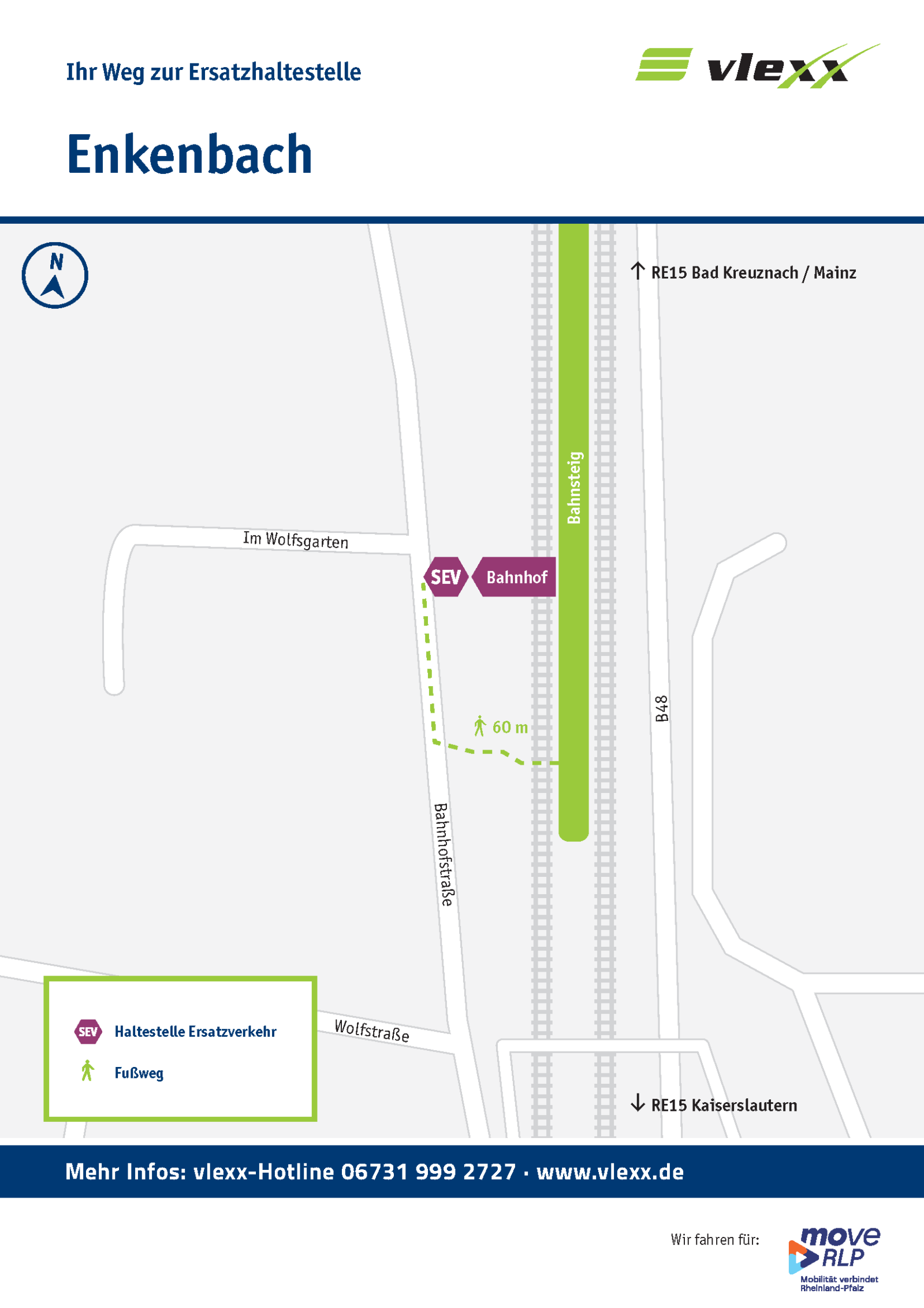 Zwischen Kaiserslautern und Bad Münster am Stein bzw. zwischen Bingen und Koblenz kommt es zu Zugausfällen. Ein Schienenersatzverkehr (SEV) ist eingerichtet. Im Zeitraum vom 29. März bis 10. April fällt der RE 17 auf dem gesamten Laufweg aus.