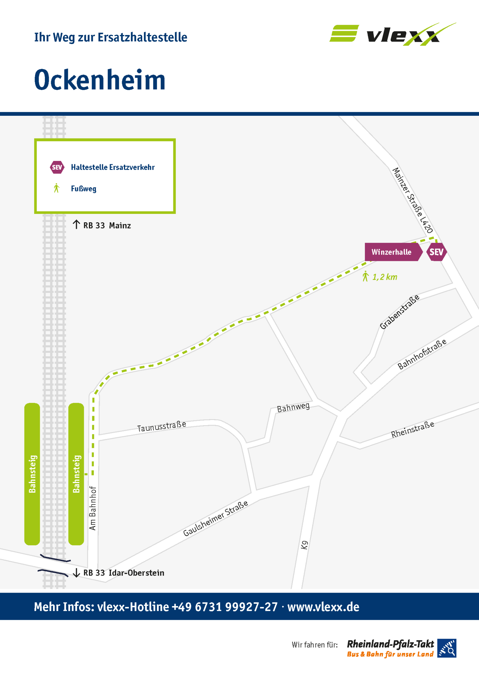 Die RB 65 mit Abfahrt um 04:15 Uhr ab Bad Kreuznach entfällt zwischen Bad Kreuznach und Bingen (Rhein) Hbf, hält jedoch zusätzlich in Bingen (Rhein) Stadt.