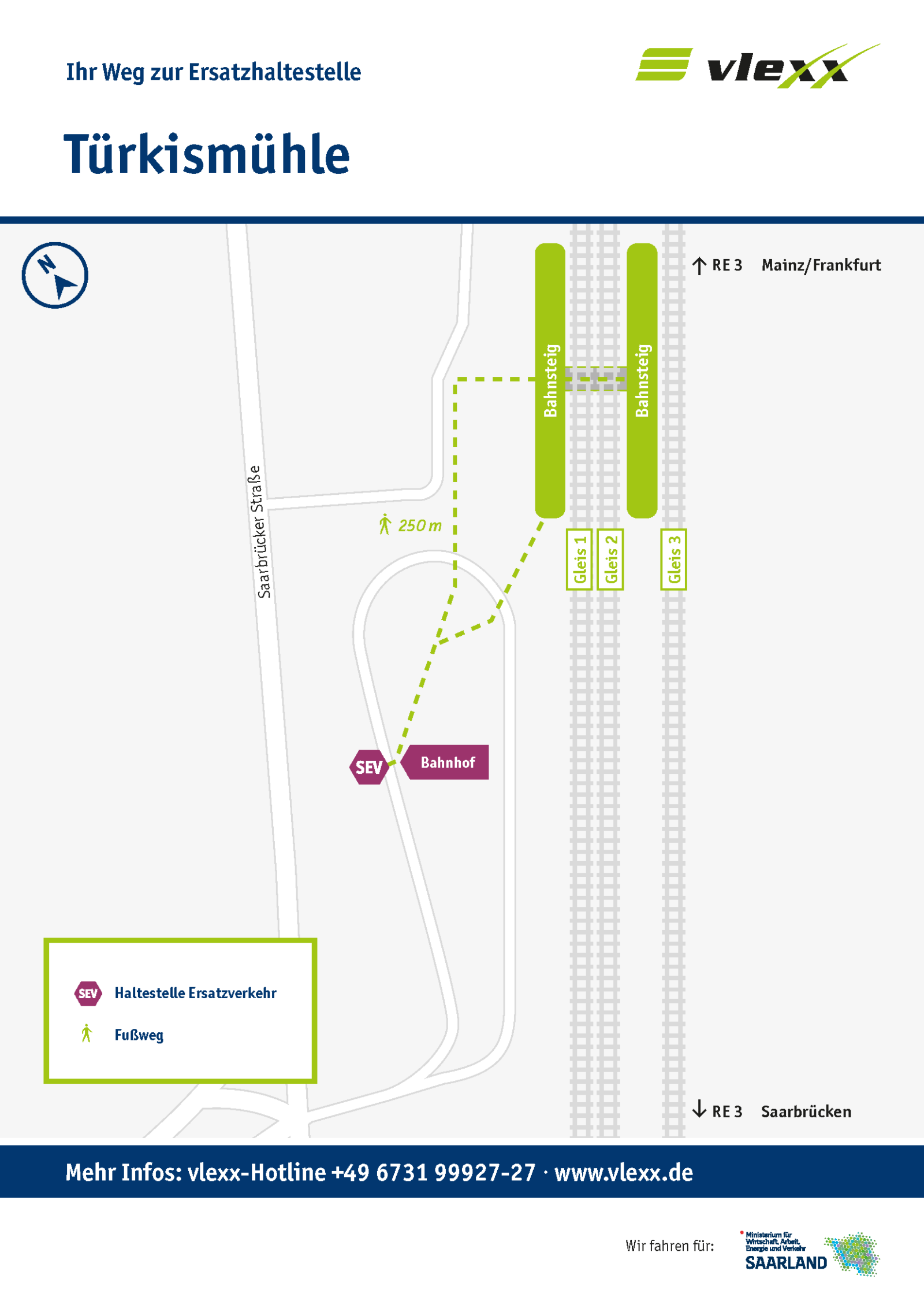 - Die RB 73 entfällt während dem Zeitraum im Abschnitt Türkismühle - Neubrücke.