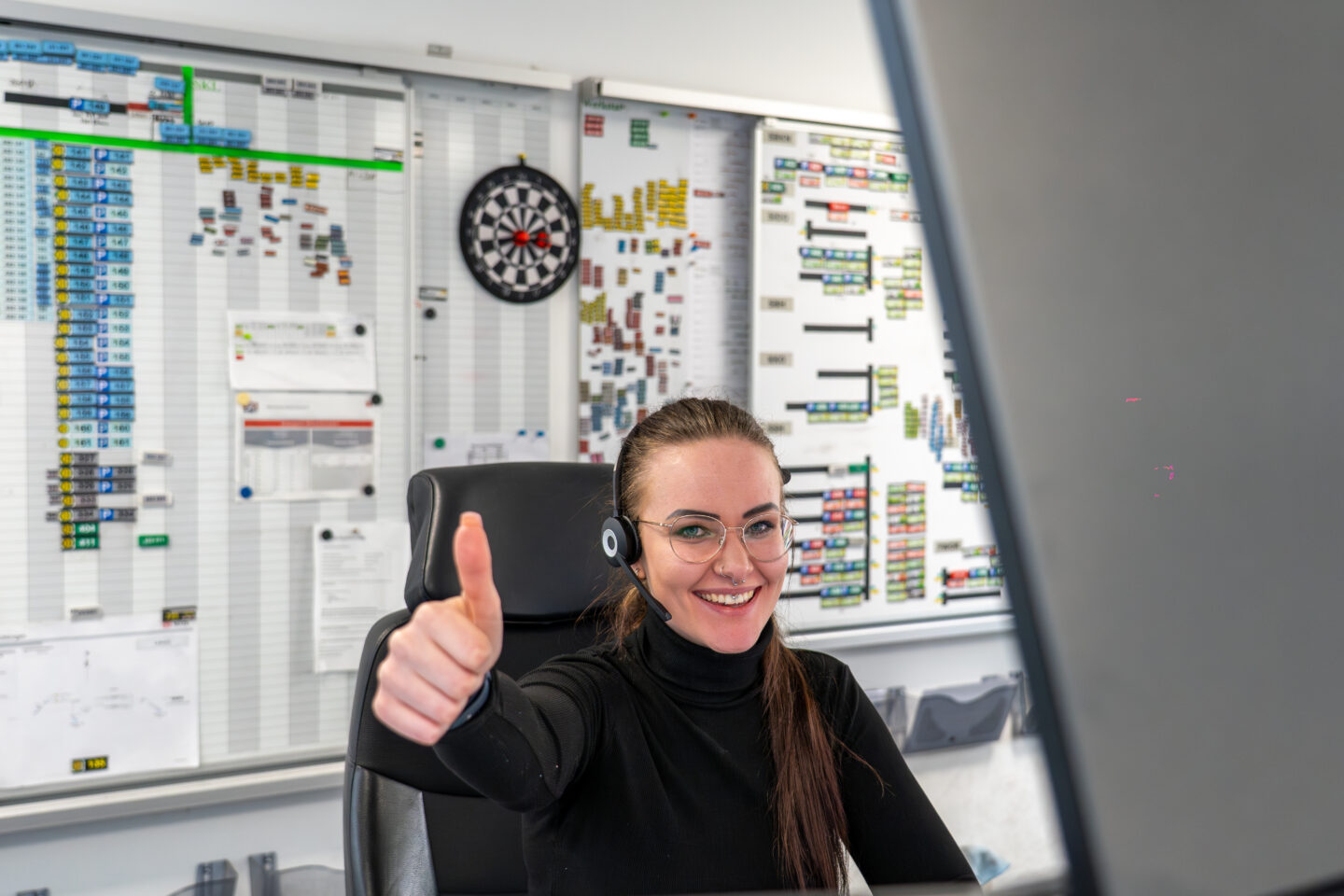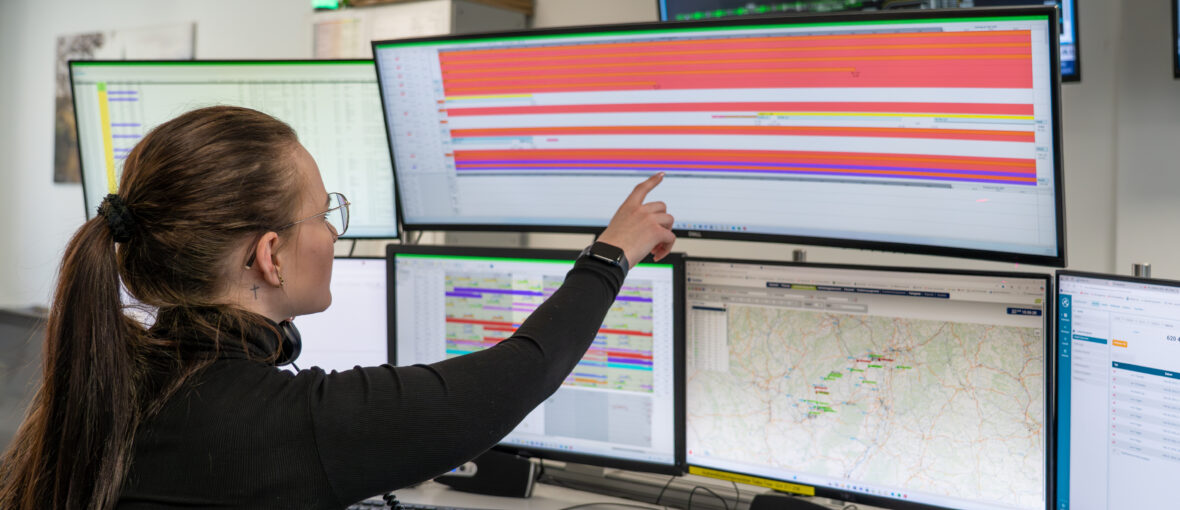 Ich bin ursprünglich gelernte „Medizinische Fachangestellte“. Nach meiner Ausbildung in einer Arztpraxis wurde mir die Arbeit dort auf Dauer zu eintönig und ich wollte eine neue Herausforderung. Vor zwei Jahren habe ich dann die Stellenanzeige als Disponentin für die Leitstelle bei vlexx entdeckt und dachte mir: Hey, da möchte ich hin! Seitdem arbeite ich hier in der Betriebsleitzentrale oder besser: in der Leitstelle.